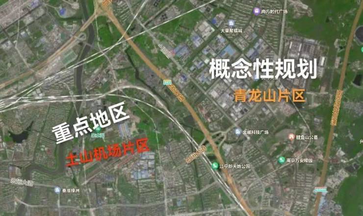 ②土山机场片区重点地区范围为:西至秦淮河、北至江宁区界、东至宁杭高速南京支线、远泰路、南至宏运大道及文靖路一带,总面积约为6.99平方公里。