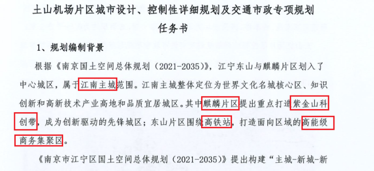 2、地区未来发展不低于南部新城。通过对标南部新城的建设标准,实现土山片区的变化,进而带动整个东山片区、乃至江宁、南部新城地区的进一步高质量发展。