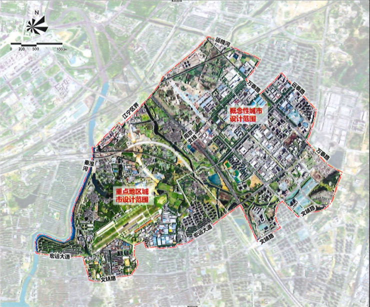 2、土山机场片区分为重点地区设计范围和概念性规划范围: