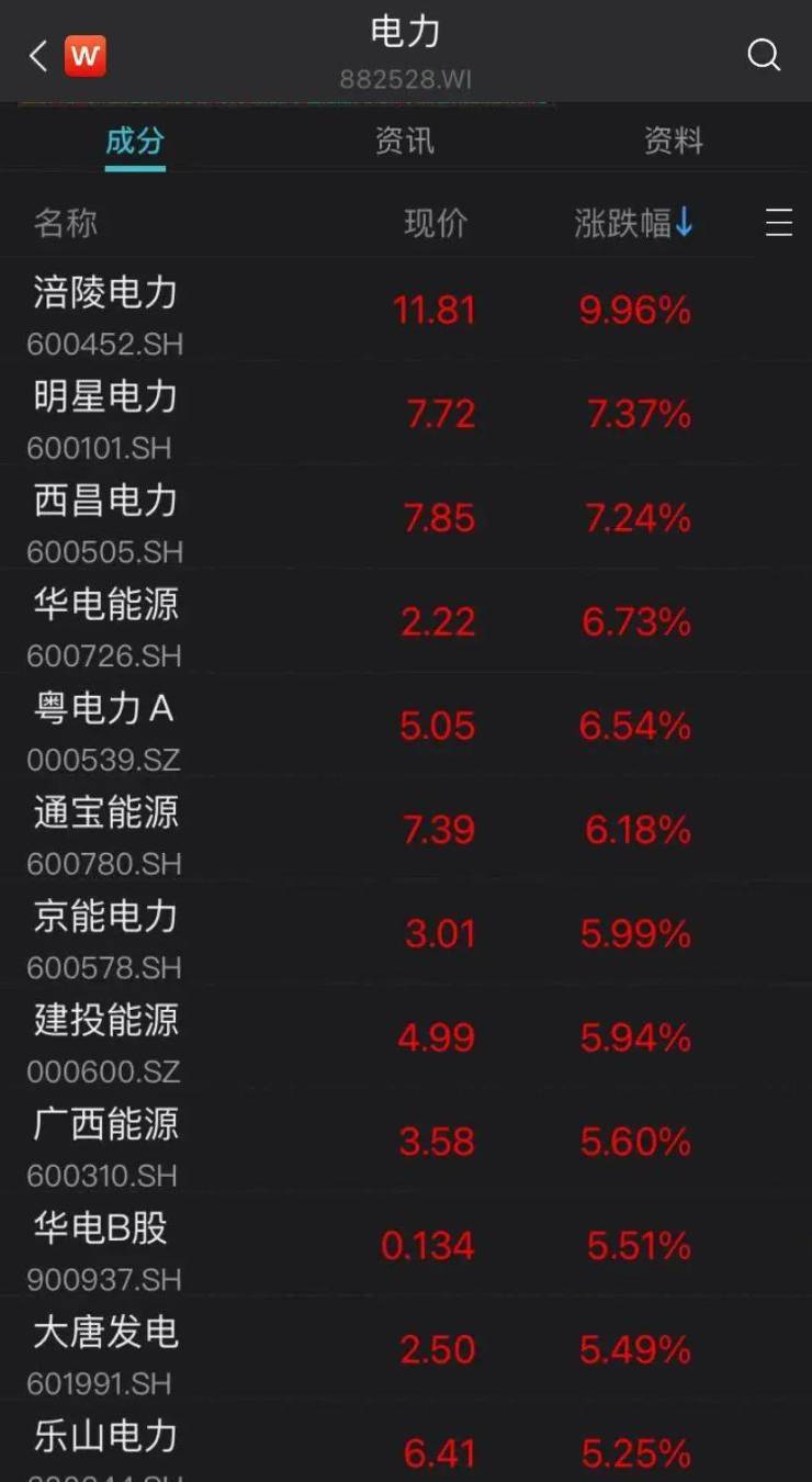 今天A股电力板块上行。截至收盘,Wind电力行业指数涨2.08%,涪陵电力涨停。作为A股水电“一哥”,长江电力上午盘中股价一度涨1.05%,创下24.1元/股的历史新高。