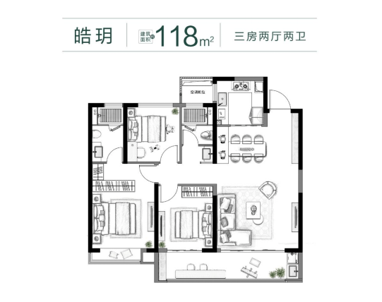 118㎡则为3房2厅2卫设计,相比小户型,餐客区域空间近一步增大,主卧也拥有了套房设计,拥有南向全景飘窗,步入式衣帽间,南向双阳台,充分保证采光。