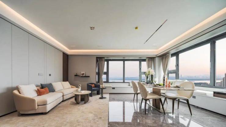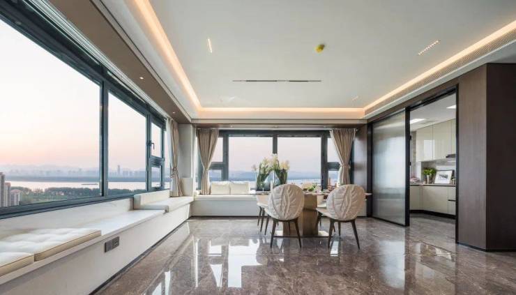 在常见的建面约143㎡的面积段上,奥体建设做出了创新,令人感到惊喜的,就是在餐客厅一体化设计的基础上,设计了270度的观景面,朗阔观景视野,将日常生活与户外的江岛风景交融于一体。