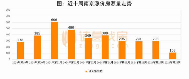 从调价房源来看,第28周南京涨价房源108套,较上周下降63.1%。与此同时,28周涨价房源占比回落0.56个百分点,业主信心小幅波动,购房者可则需入市。