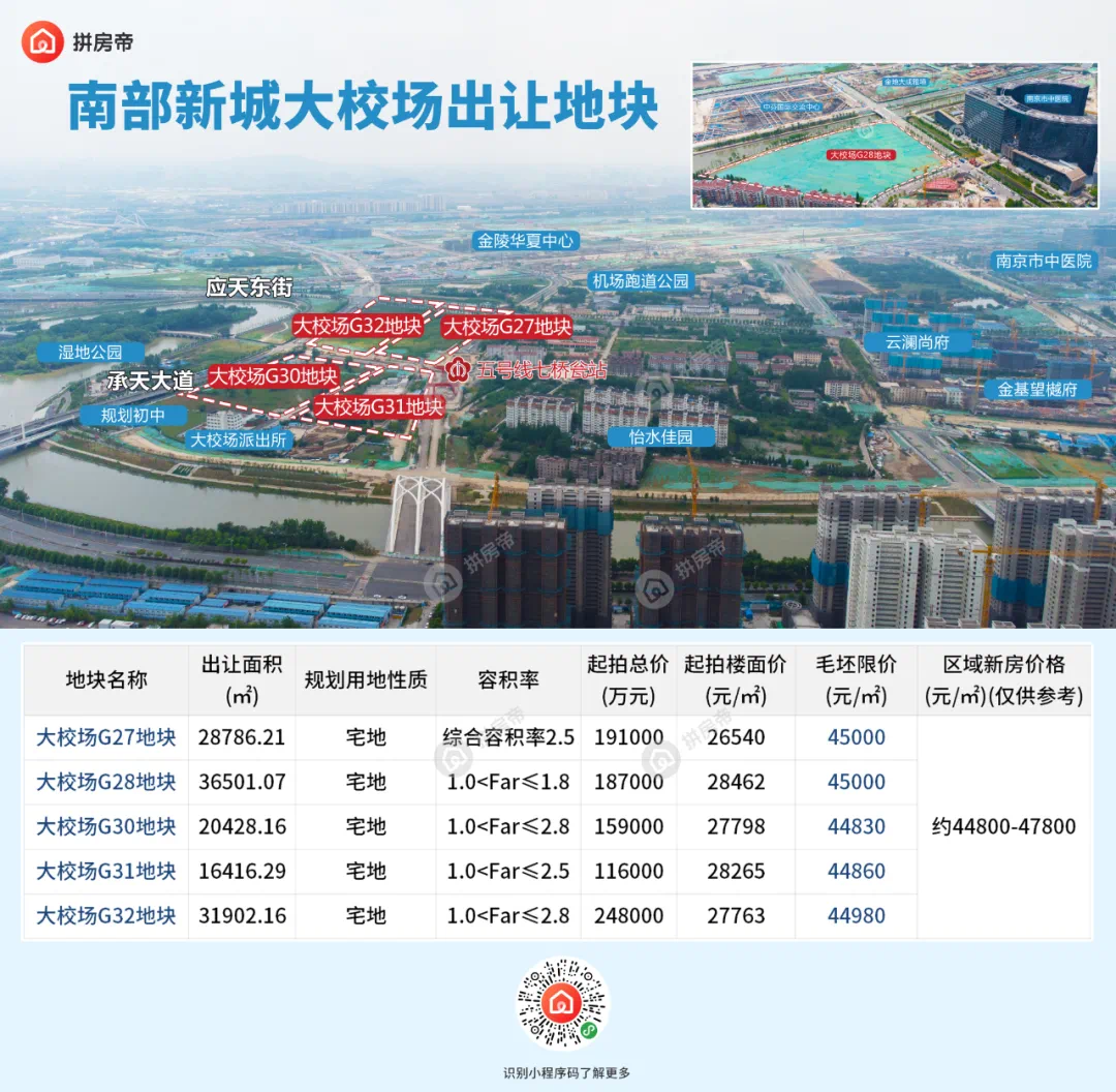随着杭州、广州、北京等城市土拍结束,南京土拍也进入了倒计时,就在下周四、5月20日,将迎来南京“两集中”出让的首次土拍。本次出让的52幅地块全部涉宅,几乎囊括了所有热门板块,其中大校场G27、G28地块毛坯限价达45000元/㎡,南部新城也一跃而上,成为本次土拍中毛坯限价较高的板块。