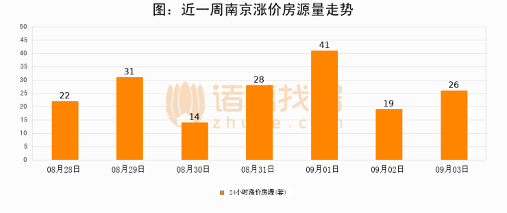 根据诸葛找房数据显示,南京24小时涨价房源量为26套,较09月02日增加7套,环比上涨36.8%。与此同时,涨价房源占比小幅扩大,业主信心有所提升。