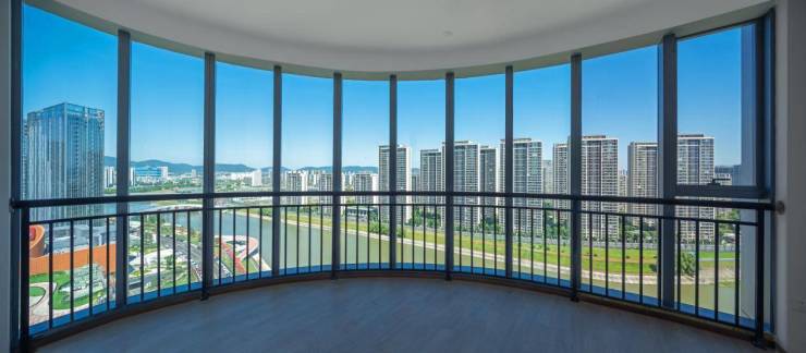 江北砂之船慧湾公寓通顶落地窗设计,270°环幕视野(部分户型),瞰江揽山,四面观景,城市万千风景尽收眼底。