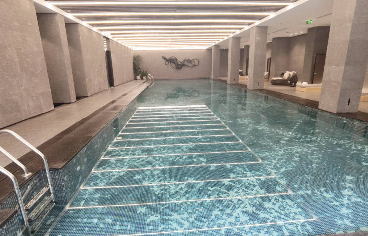 为了匹配高端人群休闲生活需求,星叶·半山玥府打造约1100㎡隐山会馆,构筑区域内高知圈层社交场,以游园的呈现手法,结合中国传统园林的空间理念,把“亭台楼阁,潭园轩室”八个传统空间进行现代演绎。配有6*25米室内恒温泳池、健身房、多功能会客厅等,曲径通幽,移步景异。