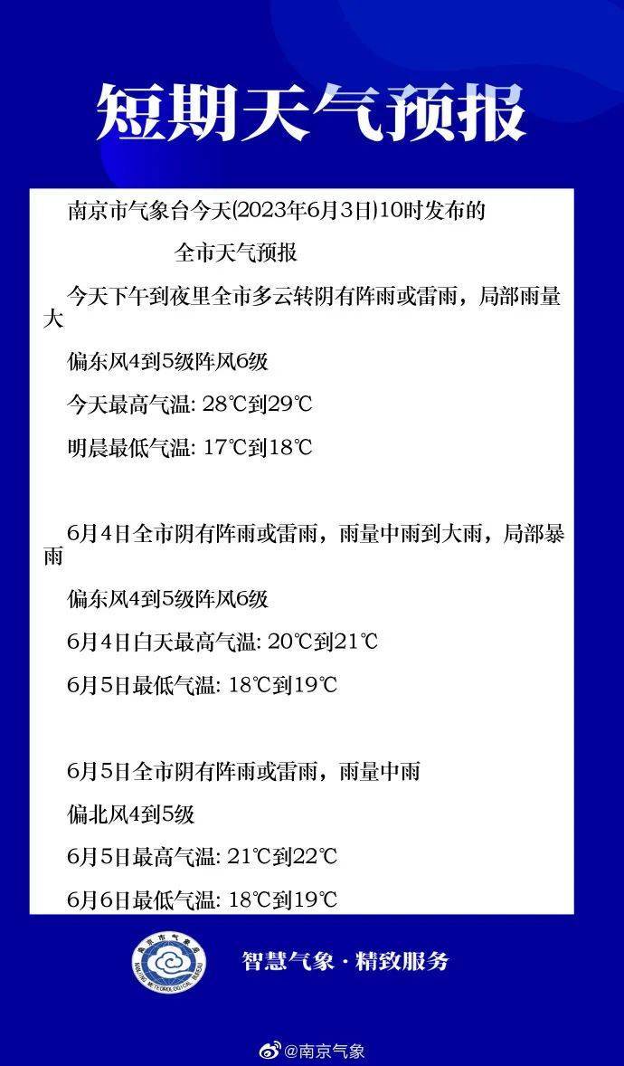 今天起至5日南京将迎来一次较明显降水过程其中4日雨量可达中到大雨,局部暴雨5日仍有中雨量级提醒市民出行备好雨具开车需关注到能见度变化保持车距,谨慎驾驶全省降水量预报图来源:南京气象、江苏气象…