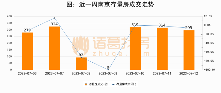 从存量房来看,2023年07月12日南京存量房单日成交295套,比昨日减少19套,环比下降6%。从近一周存量房成交来看,南京存量房日均成交套数为231套,07月12日单日成交295套,高于近一周平均水平27.7%。