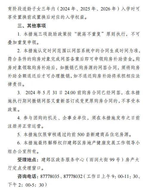 ① 适用范围:2024年6月1日-12月31日期间,在建邺区购买新建商品住宅且网签备案,并符合本措施相关政策条件的购房对象。也就是说,政策窗口期只有半年。