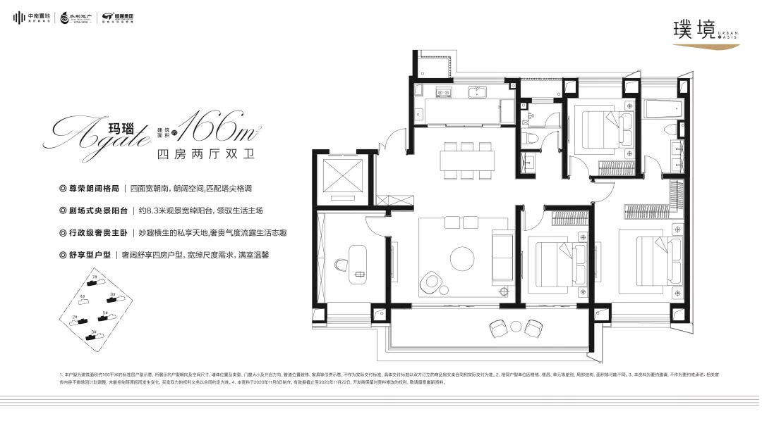 针对南京高净值家庭改善所需,璞境主力户型面积段为建筑面积约143-205㎡,都是4房布局,空间阔绰,餐客厅的相连、南北通透,留足了家庭社交空间。