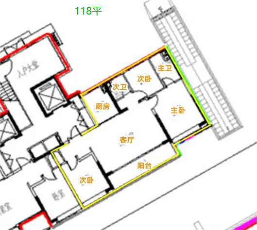 这个户型相较于118平户型,不同之处在于多了一个南向卧室,同时,阳台做了双开间设计,与次卧连通,面积更大;多了一个北向餐厅,因为多了一个南向次卧的缘故,客厅相对来说不够宽阔。