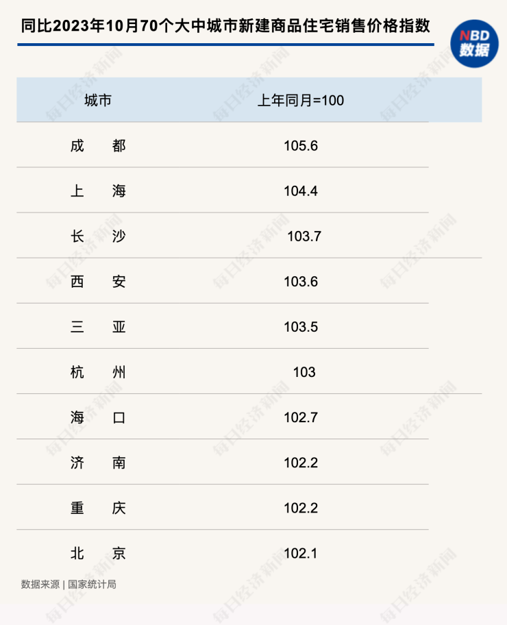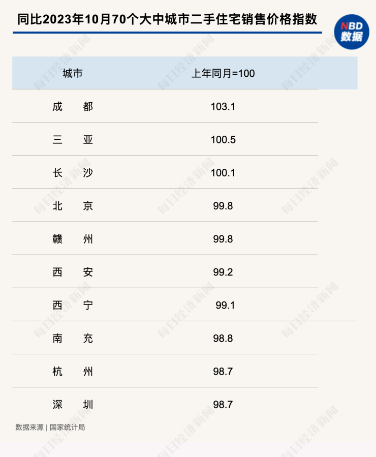 11月16日,国家统计局公布10月份70个大中城市商品住宅销售价格变动情况,70城中,新房及二手房价格环比下降的城市分别达到56个和67个,均比上月增加2个。成都、上海、三亚新房价格同比涨幅排名前三,其中成都二手房价格同比涨幅3.1%,领跑全国。
