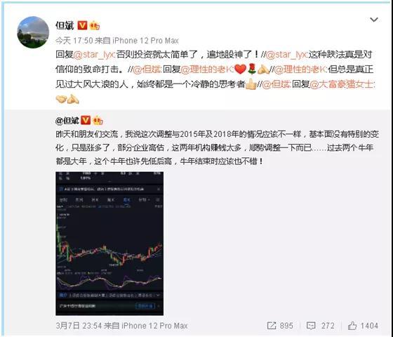 东方港湾董事长但斌则在微博指出,A股基本面没有特别的变化,只是涨多了。“这次调整与2015年及2018年的情况应该不一样,基本面没有特别的变化,只是涨多了,部分企业高估,这两年机构赚钱太多,顺势调整一下而已……过去两个牛年都是大年,这个牛年也许先低后高,牛年结束时应该也不错!”