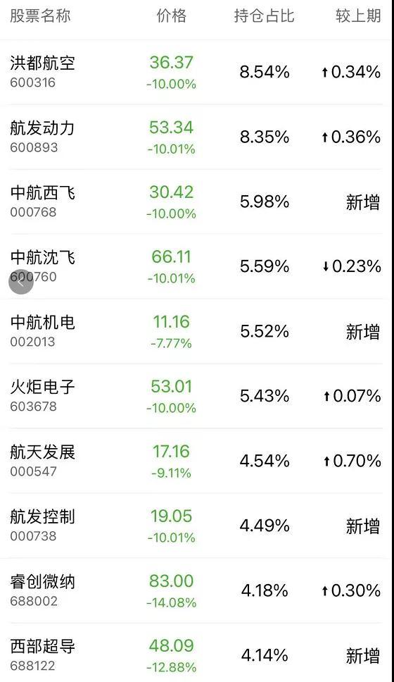 而8日最惨是一只全仓军工股的基金,跌幅超过8%,前10大重仓股最少的跌幅近8%,最多的下跌已经超14%。