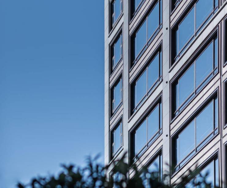公建化建筑立面,天宸云筑用高颜值的白米色石材/仿石材+浅咖色金属线条立面折射出时间淬炼的美好观感,以简约大气的设计,凸显立面质感,在城市风景线铭刻下属于自己的独特符号。