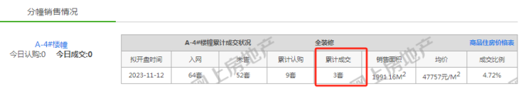 深业南湾上府去年12月推出6号楼64套房源,目前成交仅3套。