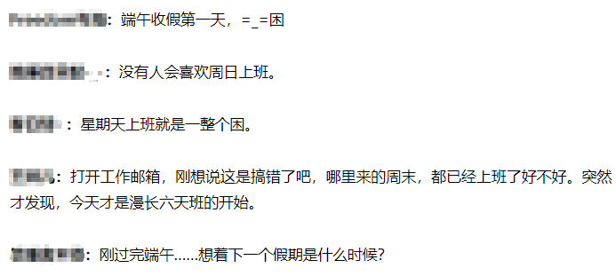 今天(6月25日)端午节后连续上6天班很多人大喊吃不消此刻,你也在上班了吗?网友的心情基本如下——你也在期待下一个假期吗?要等到三个月后放假调休共8天形成8天的超级黄金周10月7日、10月8日上班需要连上7天…
