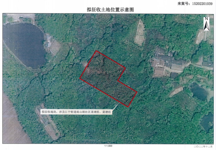 本次拟征收土地位于江宁街道南山湖社区菜塘组、庄房组范围内。拟征收土地位置详见附图。实际征收土地范围以最终批准文件为准。