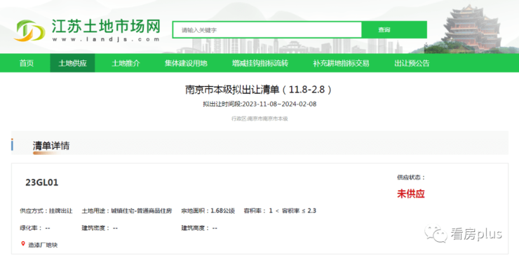 土地网公布了南京市级拟出让清单,将于2023年11月8日-2024年2月8日期间陆续挂牌出让!