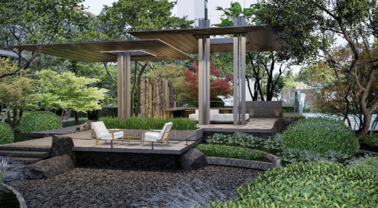 景观环境的演变趋势是动态的,重塑当代人文雅集之生活美学,错落有致的自然山水布局、丰富的景观层次,如画观法,诗意境见,以宋式元素呈现出景趣随行的宋式园林意境。