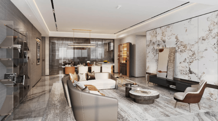 从江南四大园林之一的“瞻园”汲取灵感,以兼具雅致与精美形态,传递着天地、山水、植栽之美,从进厅到登堂再到游廊、归园、入宅,层层递进。承袭中式传统文化中宋代极简的美学风格,用简约凝练的手法,再现宋风雅致。
