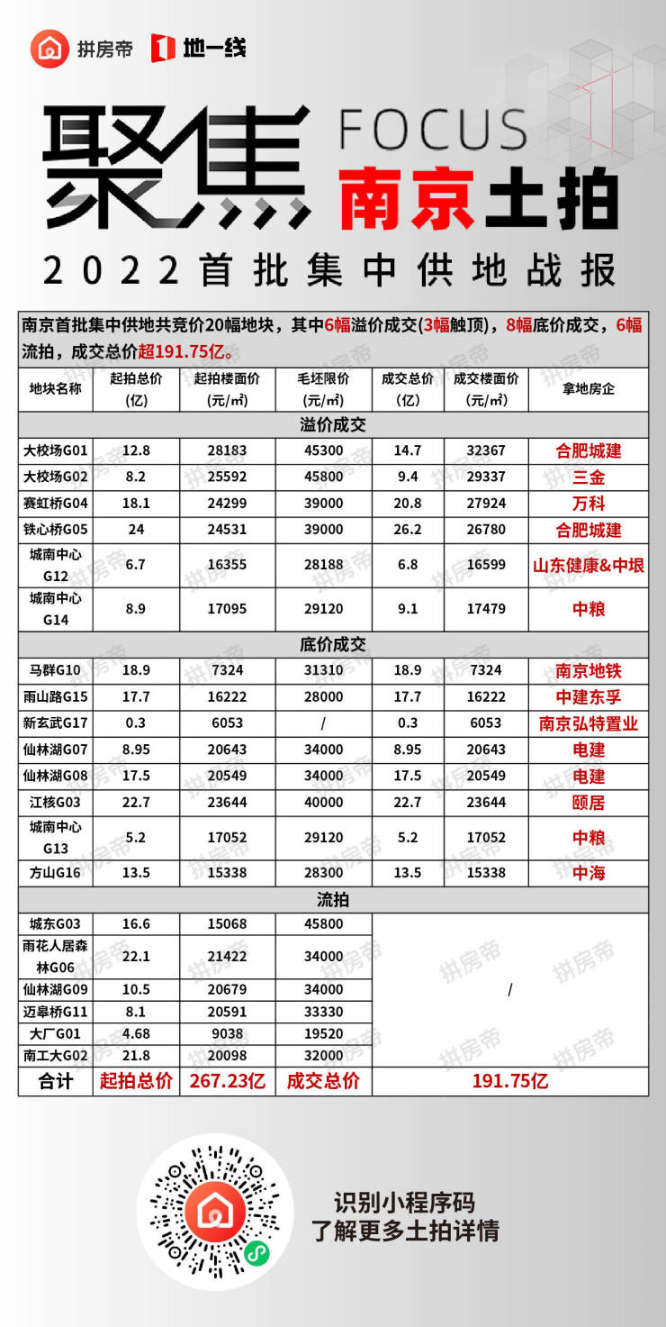 刚刚,南京今年首场集中供地的20幅地块全部结束竞价!