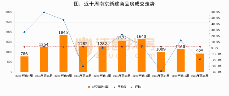 进入2025年第16周(04月14日-04月20日),南京新建商品房成交925套,较上周减少215套,环比下降18.9%