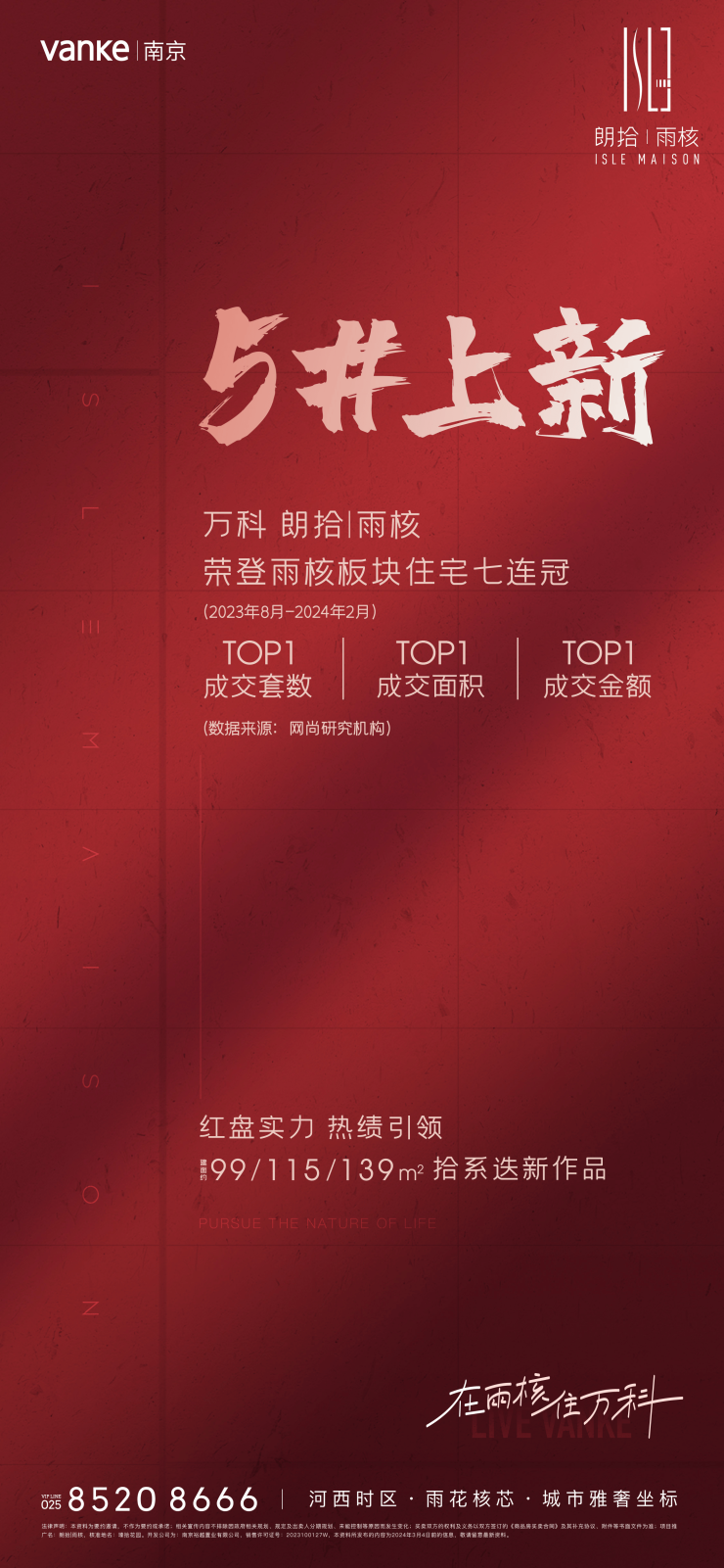 自去年万科 朗拾|雨核面市以来,便以昂扬姿态进入南京精英置业客群的视野,首开成交套数刷新南京2023首开记录,迅速成为南京楼市的“超级IP”!后续燃势频频刷新,2023年8月-2024年2月更是霸榜雨核板块成交套数、面积、金额三项第一,七连冠持续问鼎住宅热销榜首。(数据来源:网尚研究机构)