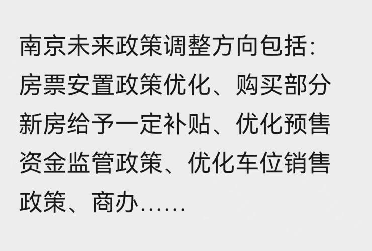 据内部人士透露,南京近期也在研究多条楼市政策,未来也许将根据市场情况,陆续出台。主要包括以下几项: