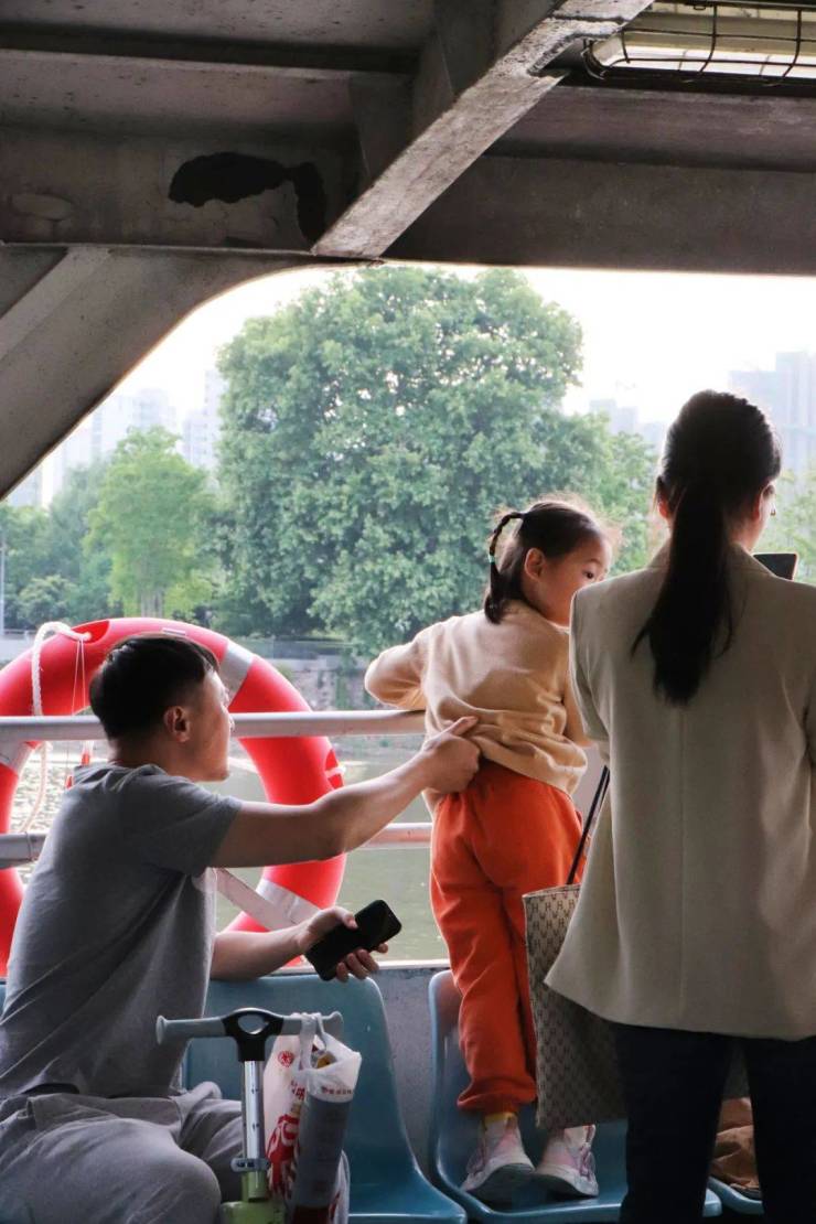 “家门口的轮渡肯定要来体验!还记得以前夏天,棉花堤渡口很多老奶奶老爷爷提着葡萄从江心洲返程。”乘客中还有不少是江心洲的居民,他们主打一个怀旧之旅。