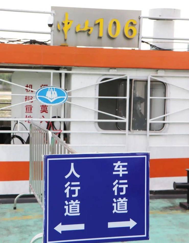这是一艘中山106客渡船,看着有些年头了,“体型”也不算大,只有一层开放,最多可以载客120人。