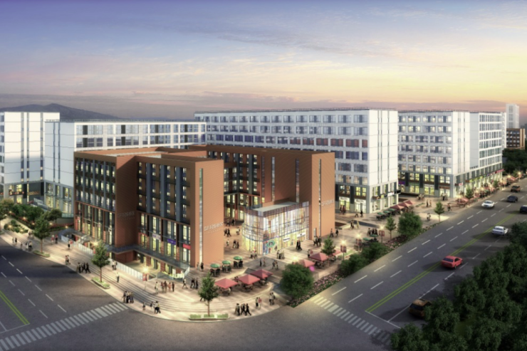 街区内围合式楼栋设计,让每栋楼之间形成了公共天井,结合公共走廊打造的垂直绿化带,通过错层布置的方式,营造出丰富多样的绿意享受。为多方位满足租户对美食餐饮、休闲娱乐、居家生活、文化教育的需求,街区内同步建设了滨河休闲商业,引进包括便民餐饮、文创书店、购物商业、休闲咖啡等,并着重打造整体滨河休闲商业空间,营造绿色健康的商业氛围。