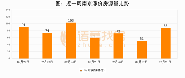 根据诸葛找房数据显示,南京24小时涨价房源量为88套,较02月27日增加37套,环比上涨72.5%。与此同时,涨价房源占比小幅扩大,业主信心有所提升。