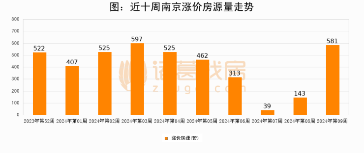 从调价房源来看,第8周南京涨价房源581套,较上周上涨306.3%。与此同时,8周涨价房源占比回落1.75个百分点,业主信心小幅波动,购房者可则需入市。