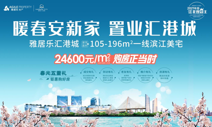 承袭雅居乐“滨江系”高端基因,雅居乐汇港城于百万方旗舰综合体之上打造雅居乐滨江绿湾。项目在建筑上采用全混凝土现浇外墙、内设2.1米进深大阳台、石材踢脚线、90°弧度主卧观景玻璃设计、玻璃防护设计非常亮眼。同时,住宅整体为“全德系精妆”, 不仅自带多项智能化家居系统,而且全屋配备大金中央空调、瑞士兰舍新风系统、威能地暖;卫浴使用汉斯格雅、杜拉维特等高端品牌。