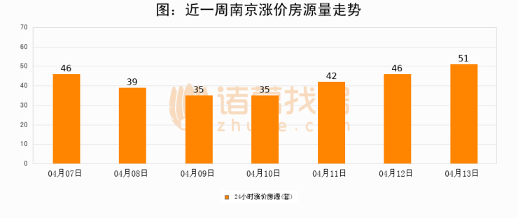 根据诸葛找房数据显示,南京24小时涨价房源量为51套,较04月12日增加5套,环比上涨10.9%。与此同时,涨价房源占比小幅扩大,业主信心有所提升。