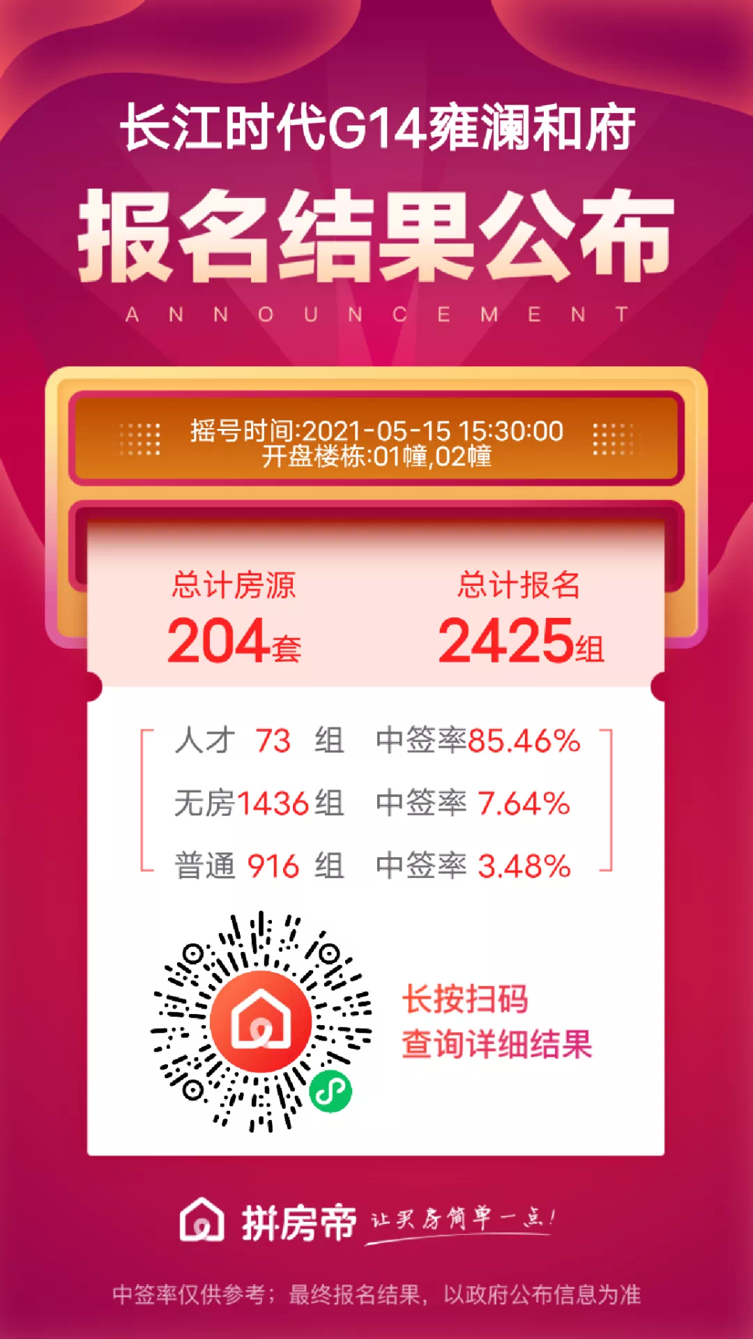 刚刚,长江时代1314摇号清册出炉,本次共计2425组买房人报名,将于明天下午三点半摇号。