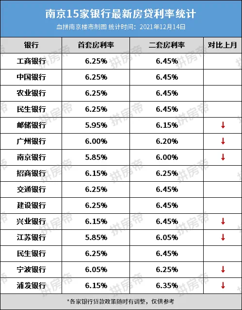 南京15家银行房贷利率较新调查!首套房较低5.85%!
