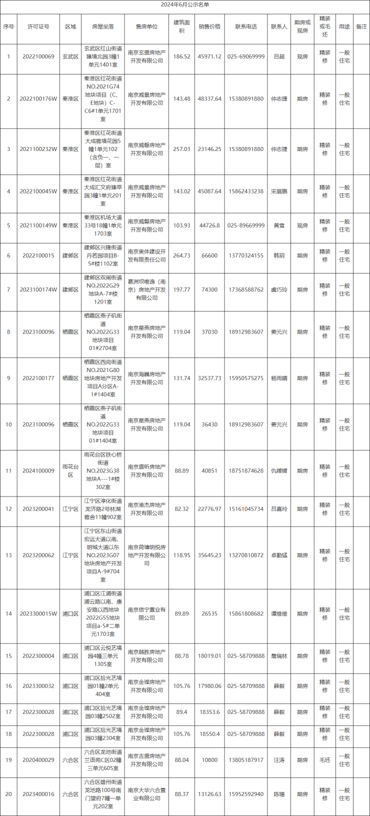 6月份退房名单来啦!本期共有20套房源可供选择,其中主城区11套(玄武区1套、秦淮区4套、建邺区2套、栖霞区3套、 雨花台区1套),新六区9套(江宁2套、浦口5套、六合2套)。