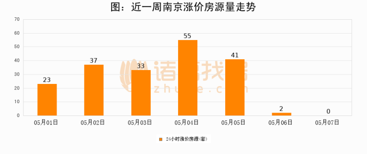 根据诸葛找房数据显示,南京24小时涨价房源量为0套,较05月06日减少2套,环比下降100%。与此同时,涨价房源占比小幅回落,对于购房者来说是一个入市窗口期,购房者可抓住时机入市。
