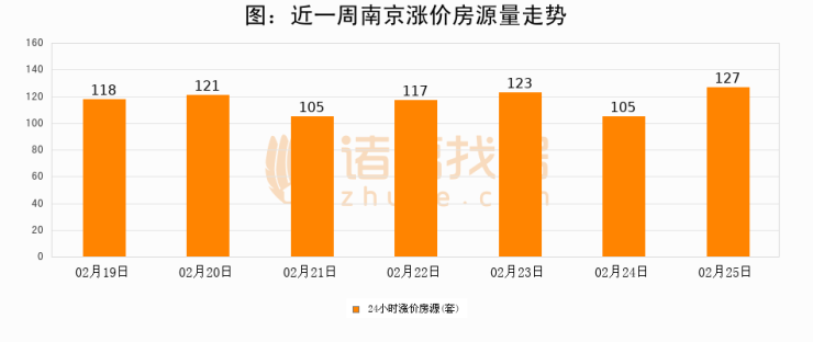 根据诸葛找房数据显示,南京24小时涨价房源量为127套,较02月24日增加22套,环比上涨21%。与此同时,涨价房源占比小幅扩大,业主信心有所提升。