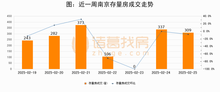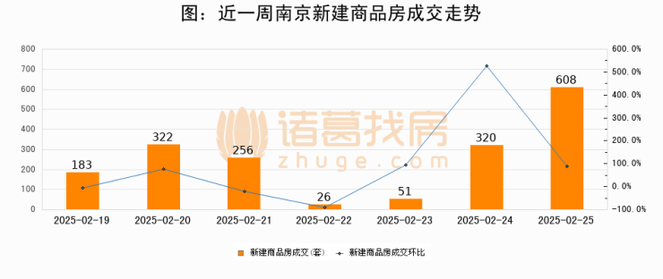 【南京成交日报】02月25日新房成交608套、二手房309套;涨价房源127套