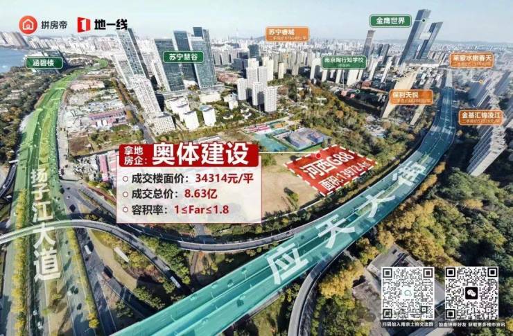 去年12月,该地块被奥体建设拿下,成交总价8.63亿,成交楼面地价约34314元/㎡。该地块西侧紧邻长江滨江岸线、绿博园城市客厅和江心洲生态科技岛,自然景观视野十分开阔。西侧毗邻扬子江大道快速路,南侧紧邻应天大街高架,在建地铁9号线、地铁10号线站点等均邻近地块。