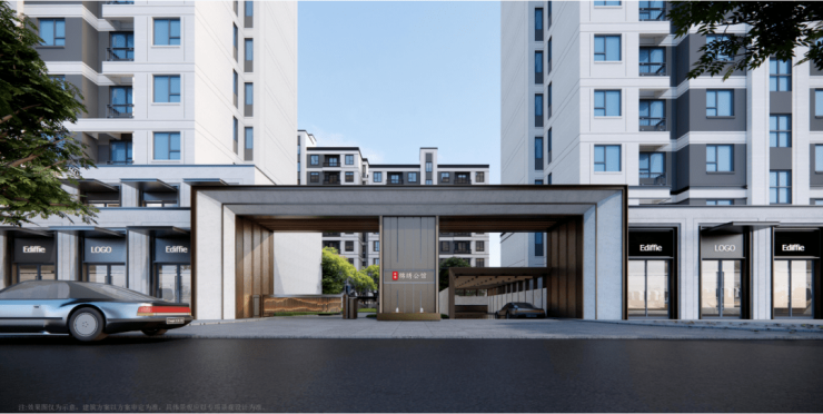 立面设计采用现代典雅的设计风格,用极具辨识度的简约线条肌理,营造出现代极简格调。