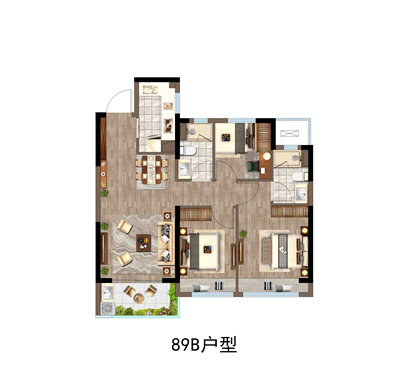 目前项目在售户型为建筑面积约89㎡的户型,也是区域内少有一家在售的边户楼盘。结合现代人的家庭结构和生活习惯,在空间设计上,该户型做了充分而细致的考虑。比如说,着眼于家庭中使用频率较高的卫生间,做到了双卫设计。同时,在卖精装包的楼市环境中,江悦润府全小区统一精装修交付,实乃一股“清流”。