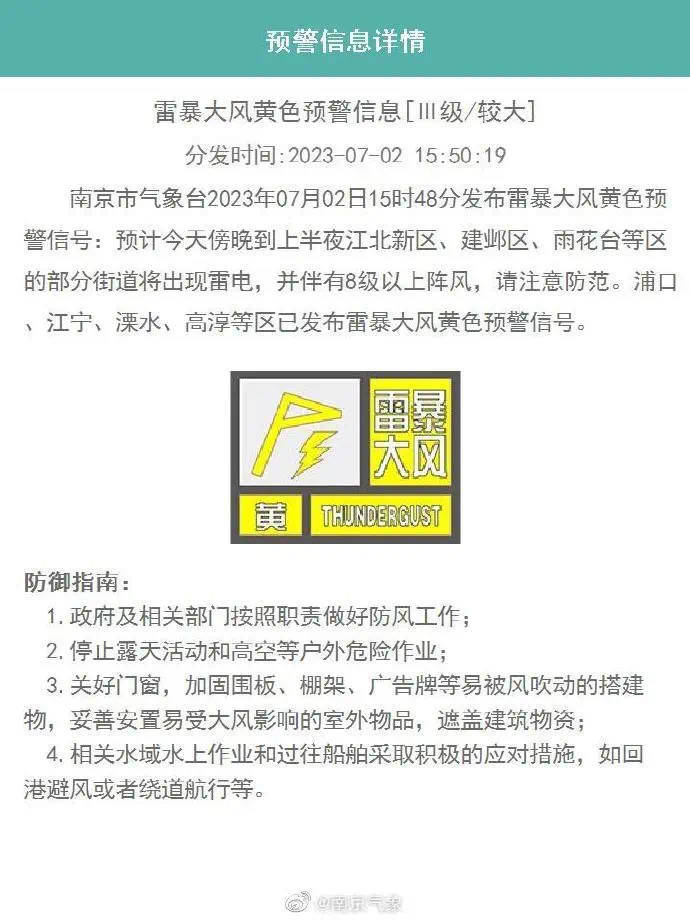 7月2日~7月4日并伴有短时强降水和雷暴大风7月2日8时至7月3日8时,江苏阴有阵雨或雷雨,其中沿淮和江淮之间地区中到大雨,局部暴雨,其他地区小到中雨,局部大雨。全省偏南风3~4级,有雷雨地区雷雨时短时阵风8…
