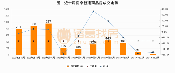 进入2024年第07周(02月12日-02月18日),南京新建商品房成交26套,较上周减少65套,环比下降71.4%
