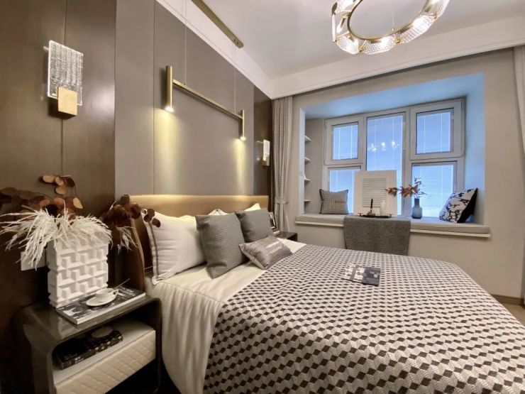 双阳卧室,阔绰且通透,飘窗设计则拉伸了景观视野,使室内空间能够更加贴近阳光与自然,让这里变成一方精致的休闲天地。套房式主卧,配备全明卫浴,明亮通风,保持居家清爽洁净,呵护主人的私密生活,让优雅日常触手可及,更显尊贵不凡。