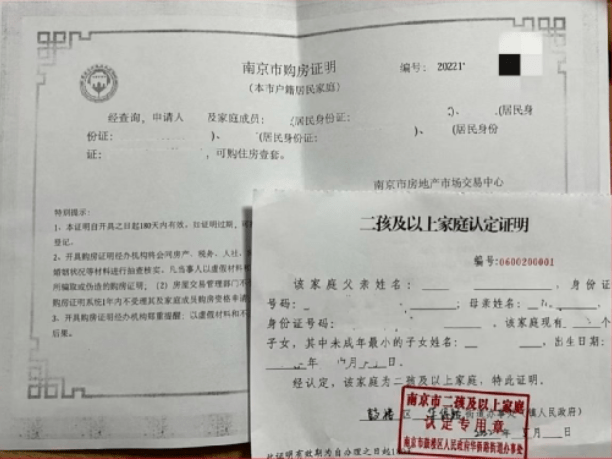 南京本地二孩及以上家庭可开具第三套房的购房证明(需要先到街道开具二孩证明,开出后最早次日使用,二孩证明有效期180天),其它开具购房证明材料不变。